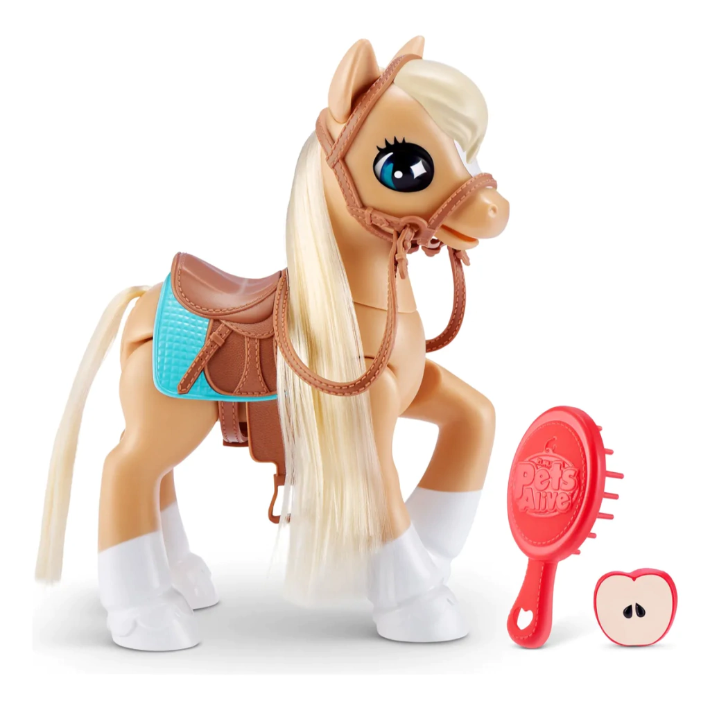 ¡Conocé al mágico pony de Pets Alive y su adorable establo! Este amiguito interactivo está lleno de sorpresas: emite sonidos reales, responde a tus caricias, y viene listo para aventuras con brida, silla de montar y peine para su melena larga y suave.